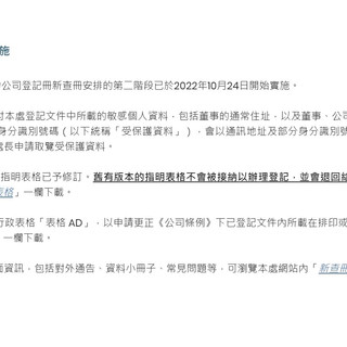 《公司條例》(第622章)下的公司登記冊新查冊安排的第二階段已於 😱2022年10月24日😱開始實施。